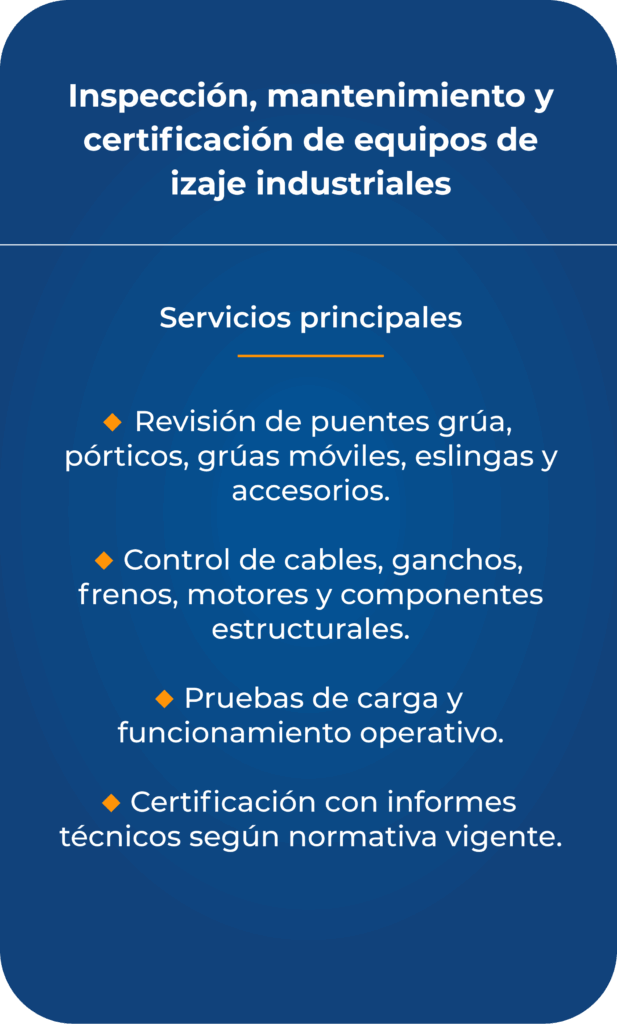 Nuestro equipo de técnicos certificados garantiza inspecciones seguras, trazables y ajustadas a normativas internacionales.